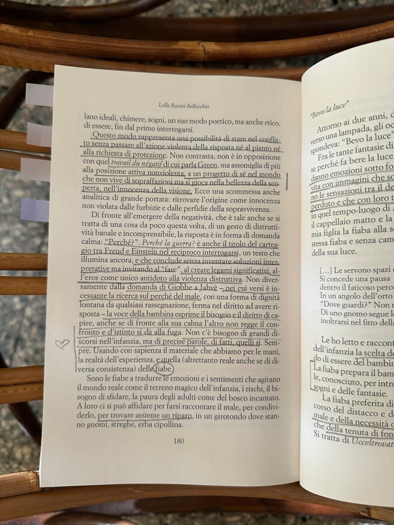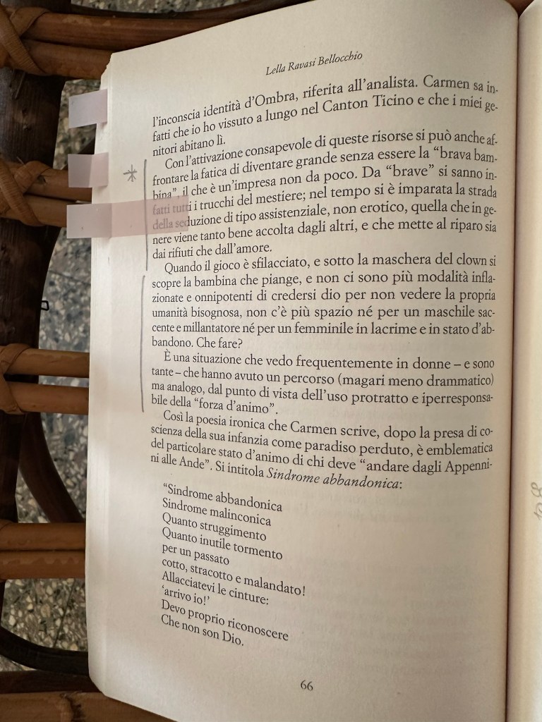 Ma è anche la storia dell’incontro a due, tra una paziente e la sua analista, dove insieme, seppur con ruoli differenti, si mettono in ascolto delle loro trame. Sullo sfondo percepisco quel costante lavoro che un’analista si trova a fare attraverso l’ascolto del transfert e del controtransfert, strumenti imprescindibili quando si lavora nel profondo.